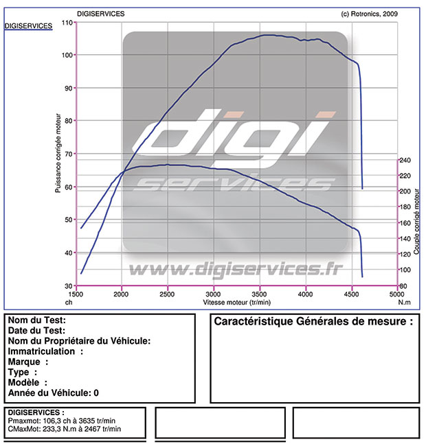 Stage 1 : cartographie moteur d’une RENAULT MEGANE 3 1.5 DCI de 85 cv à 105 cv et augmentation du couple de 200 Nm à 250 Nm.