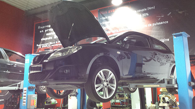 FAP : intervention électronique et mécanique sur le filtre à particules (FAP) d’un SEAT IBIZA 1.9 TDI de 90 cv. Nous en avons profité pour désactiver la vanne EGR et reprogammer le véhicule à 90 cv et de 230 Nm à 330 Nm !