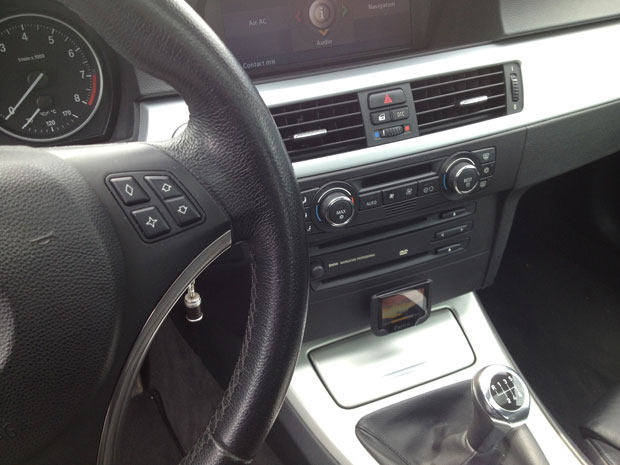 Kit Parrot : à la suite d’une reprogrammation calculateur, nous avons installé un kit parrot (prise iphone, usb…) sur une BMW 325i N52 de 218 cv.