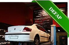 Defap : suppression du filtre à particules (FAP) électroniquement et mécaniquement d’un PEUGEOT 407 1.6 HDI de 110 cv. Nous avons également désactivé la vanne EGR et reprogrammé le véhicule de 110 cv à 140 cv et de 240 Nm à 300 Nm.