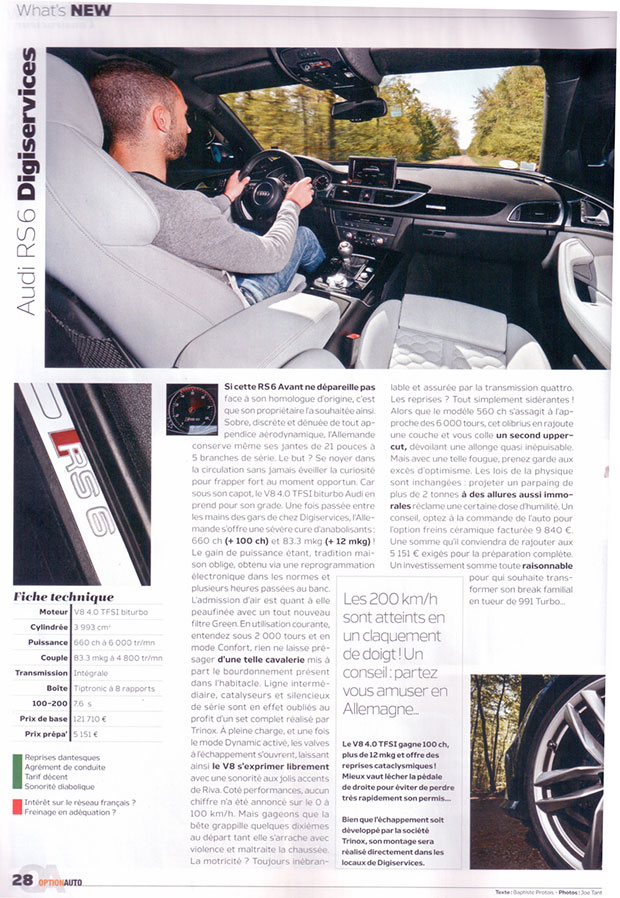 Digiservices Paris Sud > Blog > Passages presse > Passage Presse : RS 6 DIGISERVICES Dans Option AUTO