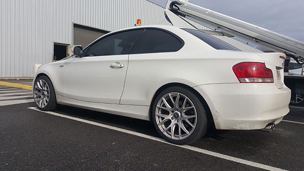 Réparation de cette ligne inox sur mesure sur cette BMW 120D de 177 cv suite à accident.