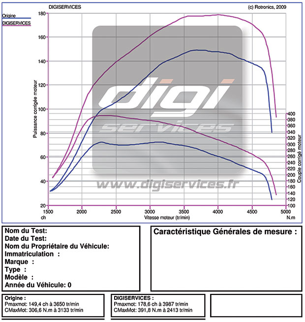 Stage 1 : reprogrammation moteur d’une ALFA ROMEO 147 1.9 JTD de 150 cv à 180 cv et augmentation du couple de 305 Nm à 390 Nm.