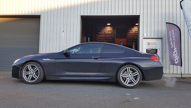 Stage 3 : reprogrammation moteur sur ce BMW 640D de 313 cv avec downpipes inox, gros échangeur frontal, filtre à air sport, turbos hybrides, décalaminage complet et reprogrammation moteur sur mesure.