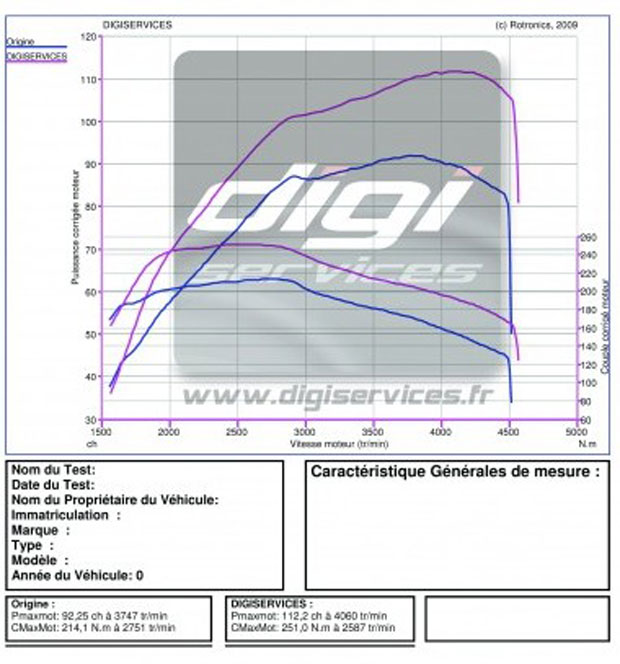 Stage 1 : chez notre partenaire TI-MOTORS, optimisation de la puissance d’une RENAULT CLIO 3 1.5 DCI de 86 cv à 106 cv et augmentation du couple de 200 Nm à 250 Nm.