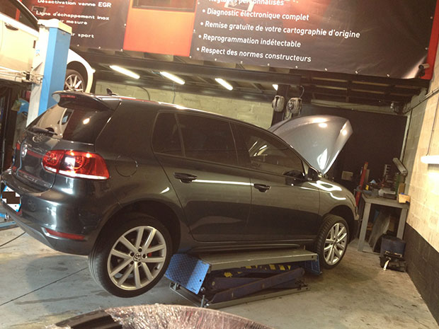 Stage 2 : reprogrammation moteur d’une GOLF 6 GTD 2.0 TDI de 170 cv pour l’augmentation de la puissance de 170 cv à 210 cv et pour l’amélioration du couple de 350 Nm à 420 Nm. Nous avons également supprimé le filtre à particules (FAP) mécaniquement et électroniquement ainsi que désactivé la vanne EGR.