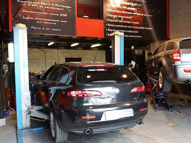 Defap : suppression du filtre à particules (FAP) mécaniquement et électroniquement d’un ALFA ROMEO 159 2.4 JTDm de 200 cv. Nous avons aussi désactivé la vanne EGR et installé un filtre à air sport GREEN.