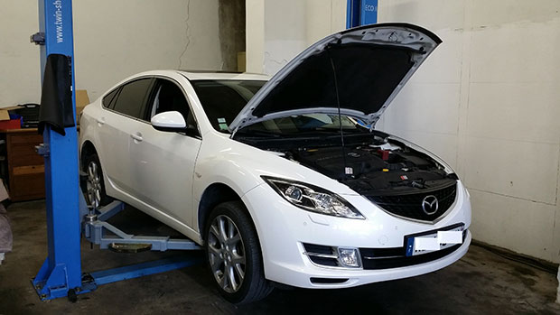 Defap : suppression électronique et mécanique du filtre à particules (FAP) d’un MAZDA 6 2.2 CDVI de 185 cv. Nous avons également désactivé la vanne EGR et reprogrammé le véhicule de 185 cv à 200 cv et de 360 Nm à 440 Nm.