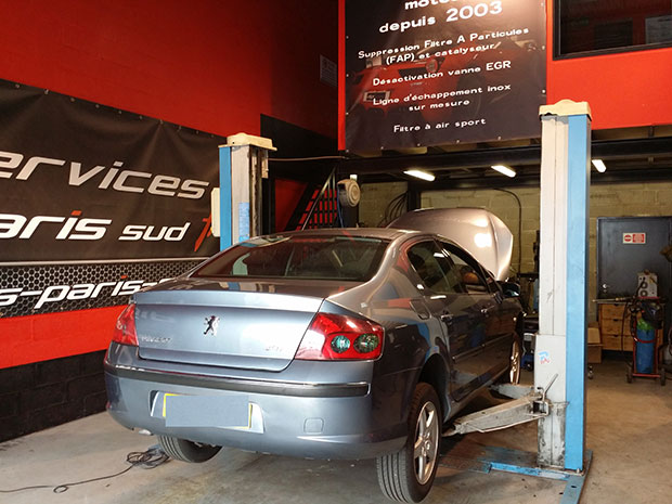 Defap : suppression électronique et mécanique du filtre à particules (FAP) d’un PEUGEOT 407 1.6 HDI de 110 cv. Nous avons également désactivé la vanne EGR et reprogrammé le véhicule de 110 cv à 140 cv et de 240 Nm à 300 Nm.