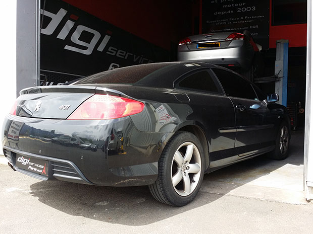 Defap : suppression du filtre à particules (FAP) électroniquement et mécaniquement d’un PEUGEOT 407 COUPE 2.0 HDI de 136 cv. Nous avons également désactivé la vanne EGR et reprogrammé le véhicule de 136 cv à 170 cv et de 320 Nm à 380 Nm.